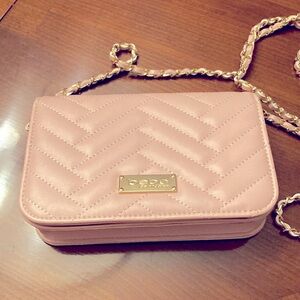 BEBE LIGHT PINK CROSSBODY. Pink rope like material throughout strap.Quilted.NWOT