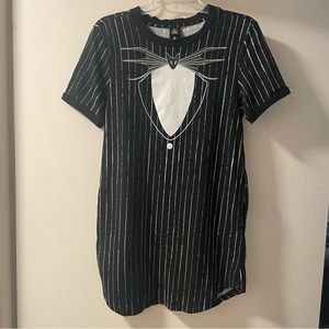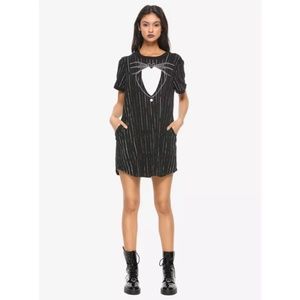 What's easier than wearing a suit? Wearing a dress that looks like a suit, of course! This dress from The Nightmare Before Christmas was inspired by Jack Skellington's striped suit and bat bow tie. Featuring a curved hem and hip pockets.