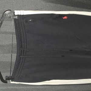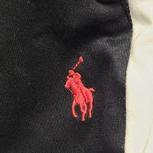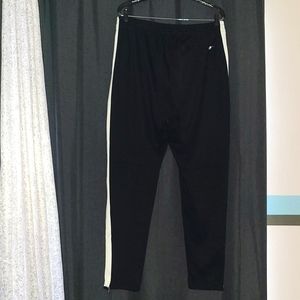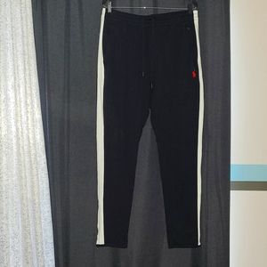 NWOT very comfortable and very high quality tapered black polo sweatpants/trackpants with a white stripe going down each pant leg polo horse logo near top left pocket in red all pockets have polo zipper 2 side pockets and 1 back right pocket also the bottom of each leg is tapered and fastened with polo zippers to loosen or tighten bottom of each leg price can be negotiated down but not by a huge margin thank u!!