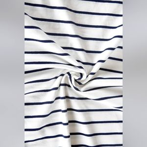 The navy stripes are a little faded on the right side.