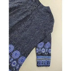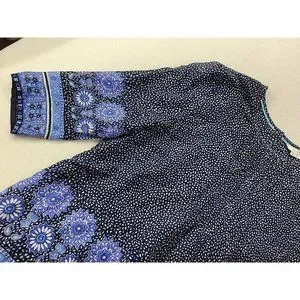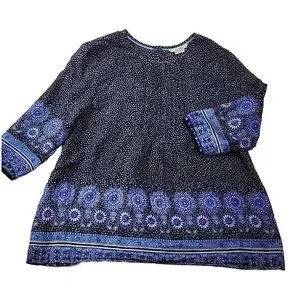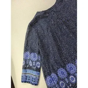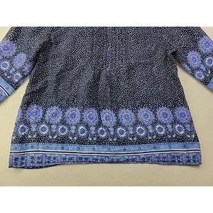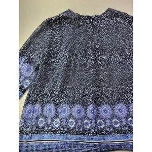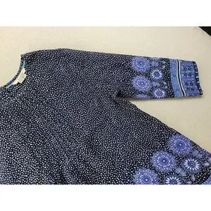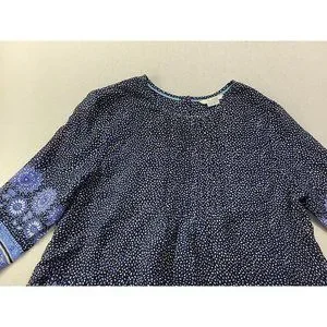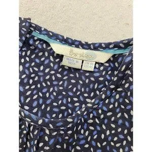 Boden Women 10 Navy Floral Blouse Pin Tucked Front Sheer 3/4 Sleeve Cottage Core