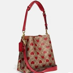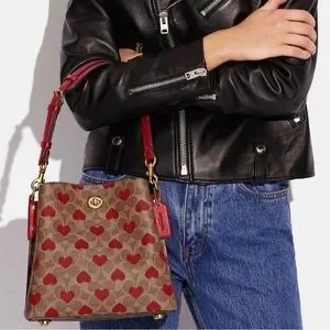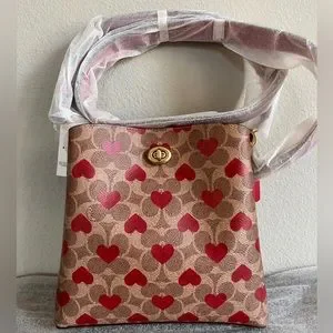 NWT Coach Willow Bucket Bag in Signature Canvas with Heart Print