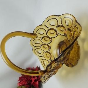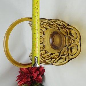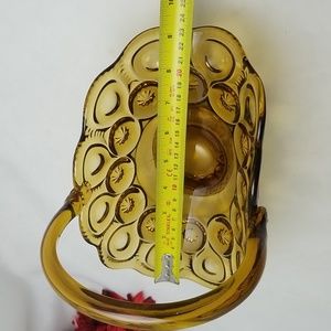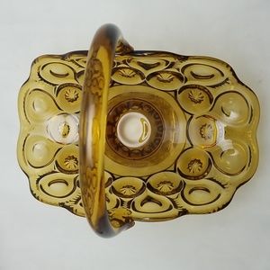 Vintage 1960's L.E. Smith Glass Co. Moon and Stars pattern amber glass basket. 9 ¼" x 6" and 8 ½" tall. No chips or cracks and in excellent condition!