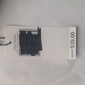 These gloves are new with tags and are super soft! Navy with a cute paisley design in cream/winter white, red, pink, and purple. Cuffed at the wrist. Inside is multicolored knit. From the wrist to the middle finger measures 10". One size fits most.