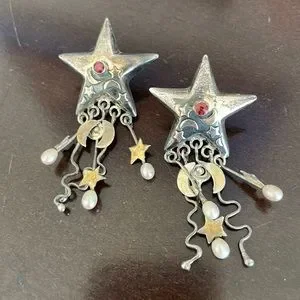 Lighter than they look, these earrings are a statement piece that will transform any outfit. I did not polish them so you can see them with a slight tarnish, but you can clean them to a bright, shiny sterling. One of a kind piece.