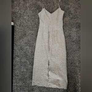 Zara Gray & White Striped Midi Dress – Hidden Back Zipper