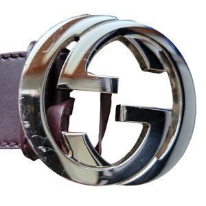 Gucci Brown Leather Silver Interlocking G Belt Buckle 90/36