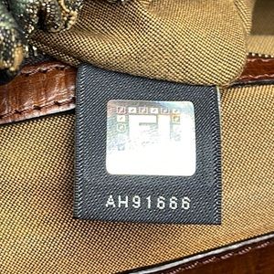 FENDI EUC TOBACCO PEQUIN STRIPES FABRIC AND LEATHER MAGIC SHOULDER BAG RARE FIND