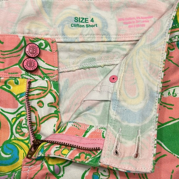 LILLY PULITZER Clifton Shorts Bright colorful tropical Lilly logo print. Double logo button closure. Zip fly. Cuffed hem. Front and back pockets. Belt loops. 98% Cotton/ 2% Spandex. Should you have any questions, please do not hesitate to ask. Thank you for visiting my closet. 💐