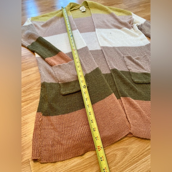 Well made and super soft multicolored striped open cardigan with front pockets.