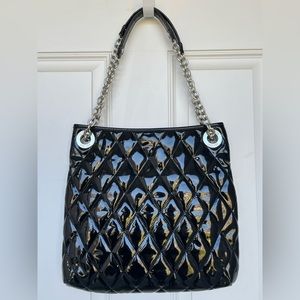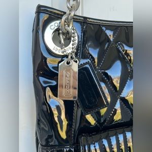 Authentic Coach Black Quilted Slim Poppy Liquid Gloss Bag Purse Tote - EUC