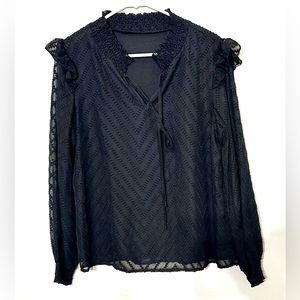 BNWOT Tie Neck Ruffle Trim Lantern Sleeve Blouse!