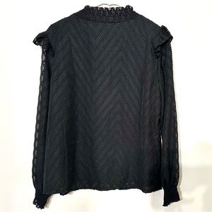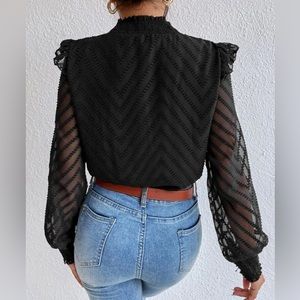 🔥BNWOT Tie Neck Ruffle Trim Lantern Sleeve Blouse!