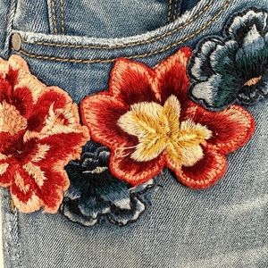 Floral embroidery adds a fun vibe to cropped high-rise jeans.