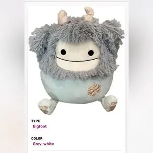Evita the Bigfoot is a grey Squishmallows Size 12” - NEW