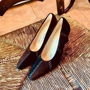 ✨💛✨ Ferragamo Espresso / Nero Suede Calf Leather Patchwork Pumps✨💛✨ Size 6✨💛✨