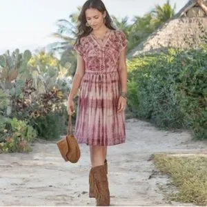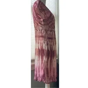 Sundance Gemi Pink Multi Tie Dye Floral Embroidered Dress Cupro Chiffon Size S