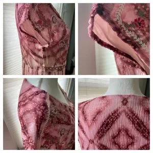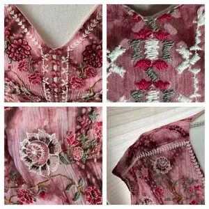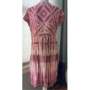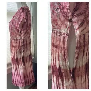 Sundance Gemi Pink Multi Tie Dye Floral Embroidered Dress Cupro Chiffon Size Small. See small holes shown in the pictures.