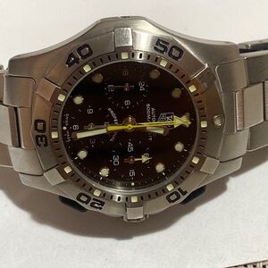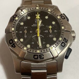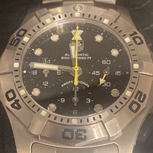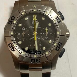 Tag heuer 500 aguagraph in very good condition Swiss automatic caliber 60 Recently serviced by tag heuer . Fits up-to 7.5 wrist . No box . But with a New 2year warranty receipt . For overhaul work done .all items over $500 go thru postmark authentication process before delivery to you. 👍🏻😎