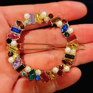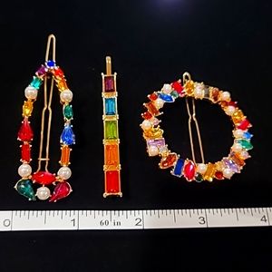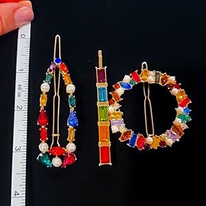🌈 Beautiful Rainbow Colored Baguette Crystals and Pearls 3 PC. Hairpin Set.