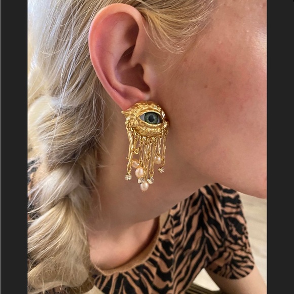 Introducing our eerie Gold Tassel Victorian Style Eye Earrings; perfect for adding a dash of enchantment to your style with a touch of elegance and a mystical flair.