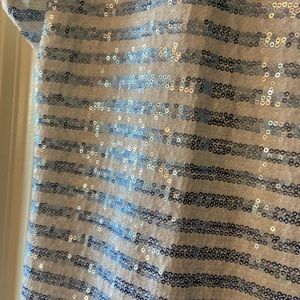 Chico size 3 or xl sequin blue and iridescent white womans top. Perfect to wear under jacket for Holidays. Was 46.95 now asking a lot less.