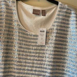 Chico NWT sequin blue and white top size 3 or xl woman’s top gwenlynn scoop