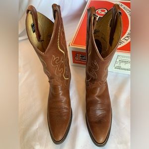 Justin Boots Leather Cowboy Medium Brown Boot.