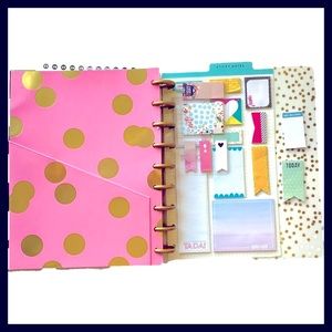 This planner comes with sturdy laminated covers and plastic discs. The disc bound system allows you to add/remove pages and personalize with snap-in accessories. It’s 2” thick with lots of planner activities