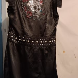 Ed Hardy Rare vintage gorgeous vintage rhinestone skull dress L