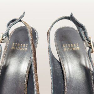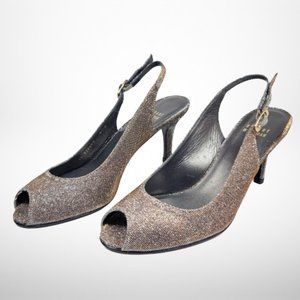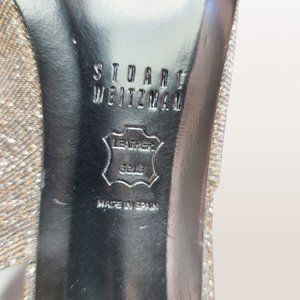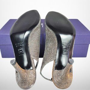 STUART WEITZMAN Slinky Glitter Peep-Toe Slingback, Pyrite Nocturn - Size:8