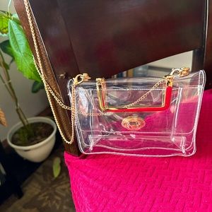 NIP Clear 1 mm PVC Crossbody with gold chain. Wallet not included. Gold hardware. 7w x 5h x 3d with a 50 in chain. Stadium….concert….approved bags