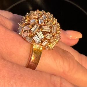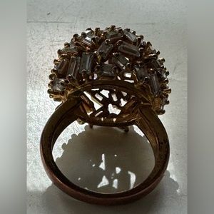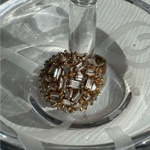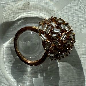 Large Gold rhinestone “ball” ring w/ rectangle muted rhinestones pieces -Size 8