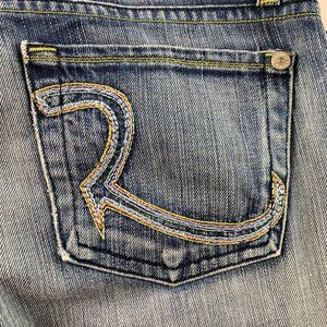 LONG Rock & Republic Jeans Rainbow Embroidered Pocket Roth Flare 29