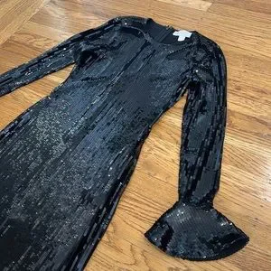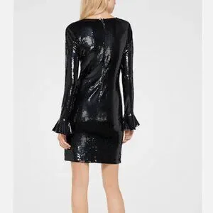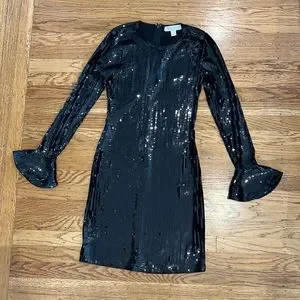 Michael Kors Sequin Bell Cuff Long-Sleeve Dress in Black
