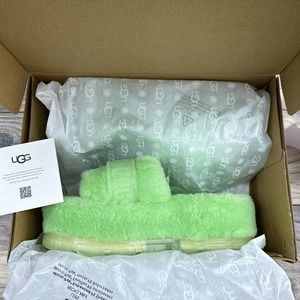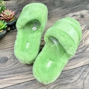 ❌SOLD❌NIB UGG Fluffita 9 40 Parakeet Green Clear Slide Slipper Platform Sandals