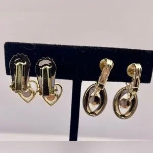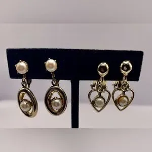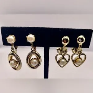 3 for $30 Two Pairs of Vintage Gold Tone Clip On Earrings with Faux Pearls