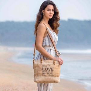 New! Myra Bag Repurposed Jute Canvas And Leather Market Tote Shoulder Bag
