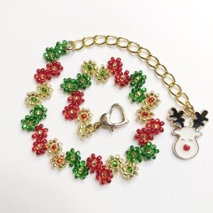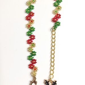 Christmas Holiday Bracelet Reindeer Charm Gold Red Green Beaded Heart Clasp New