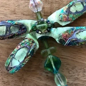 Iridescent dragonfly pendant, artisan-made, in beautiful shades of green
