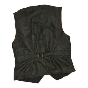 navy blue tuxedo vest with adjustment buckle on back.