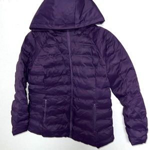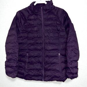 Grape Purple Lightweight Puff Jacket Women’s Size Large Packs into Pouch & Hood