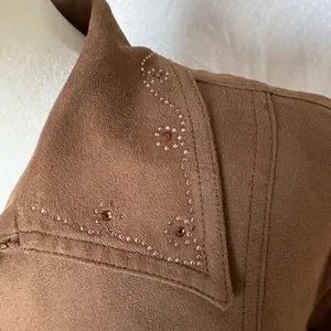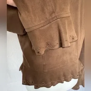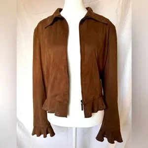 Faux Suede jacket by Moschino Jeans In A Cocoa/Capuccino Color. Made In Italy. Cropped style