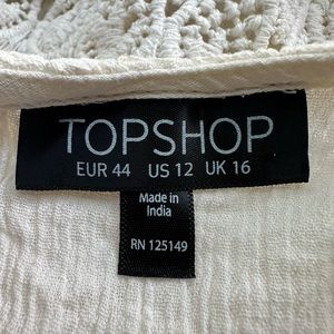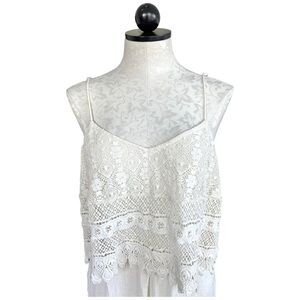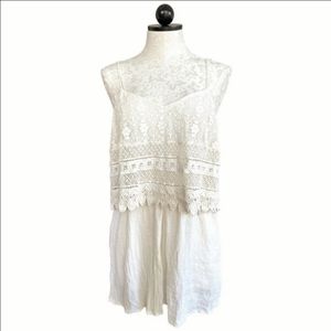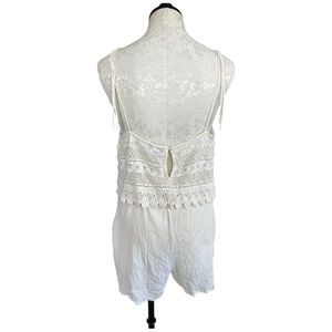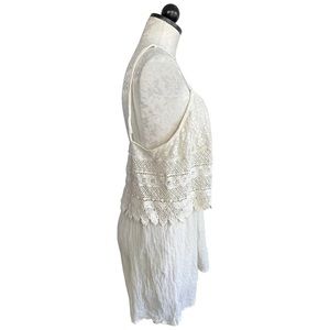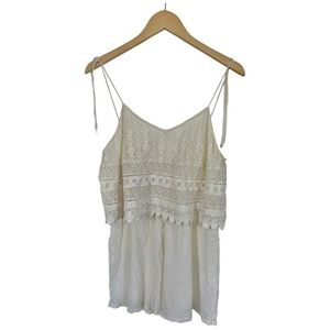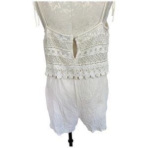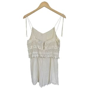 TopShop Boho Crochet Overlay Romper Cream Crinkly Gauze Spaghetti Straps Size 12