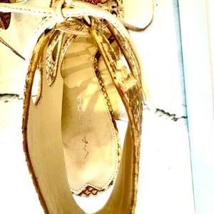 Via Spiga genuine snakeskin lace up heeled booties in cream and tan with leather laces. Very sexy and will go with almost any outfit. Dress up or down. 4” heels.