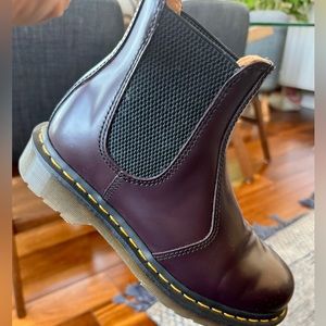 Like new! Dr Martens Chelsea boot in a beautiful burgandy. Hard to find in this size.