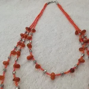 Chicos 14" length, 3 strands in burnt orange beads with small silver balls