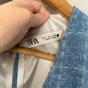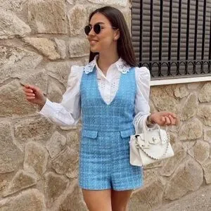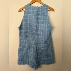 Zara Blue Tweed V-Neck Romper Blogger Favorite