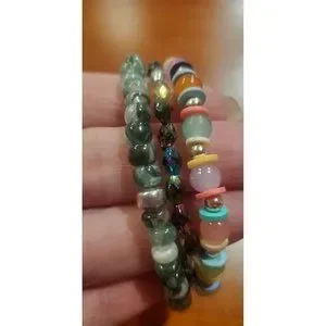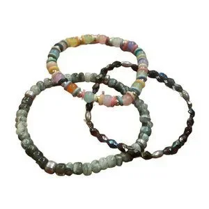 3 Stretch Bracelets with Multicolored Round Beads Chunky Jewlery.