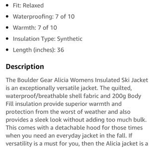 Boulder Gear Alicia Women’s Quilted Ski Jacket - size XL, black, in good, used condition.